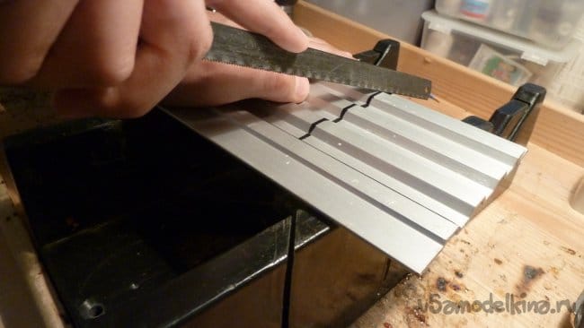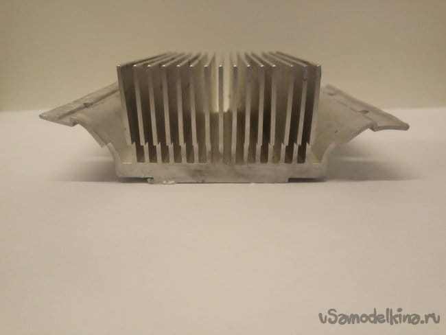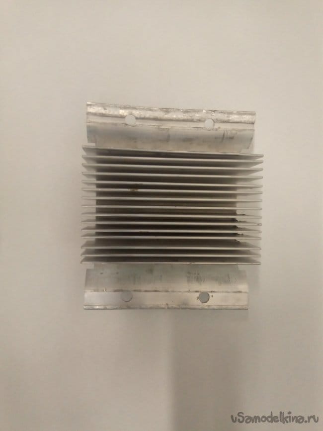 Приступим к сборке. С начало отогнем крайние пластины радиатора охлаждения и сделаем 4 отверстия для крепления.