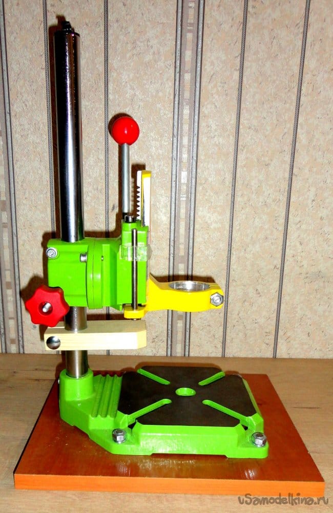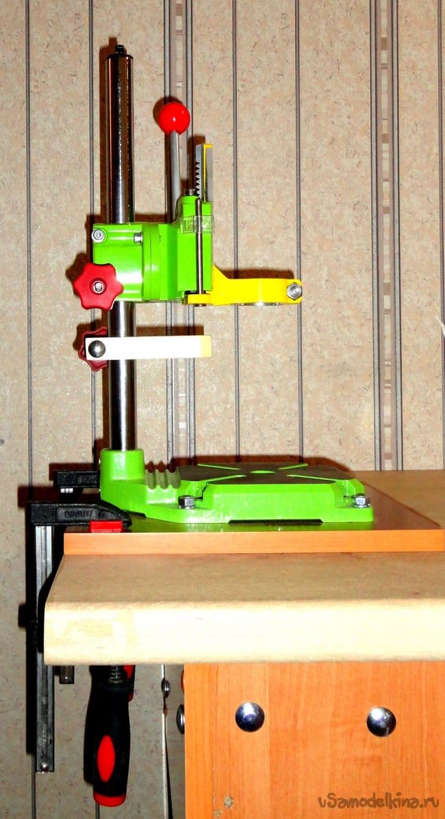 Всем доброго времени суток. Предлагаю вашему вниманию свой вариант простейшей доработки сверлильной стойки для дрели «Skrab 25519», значительно повышающие удобство её эксплуатации.