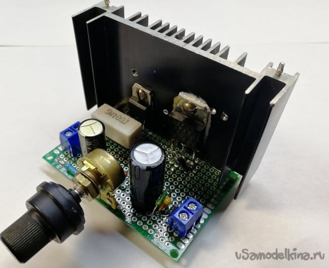 В данной статье я расскажу об ещё одном линейном стабилизаторе напряжения, который собрал относительно недавно. Построен он на популярной микросхеме LM317 и биполярном PNP транзисторе. Готовый модуль выглядит следующим образом: