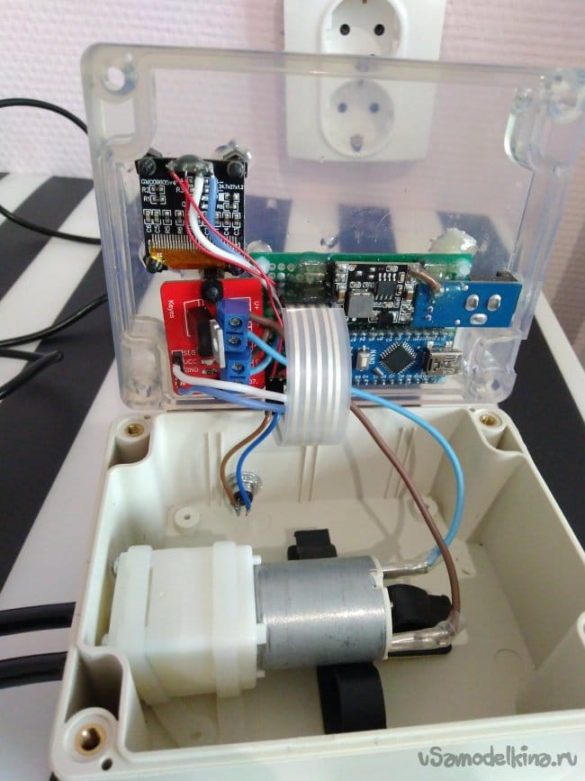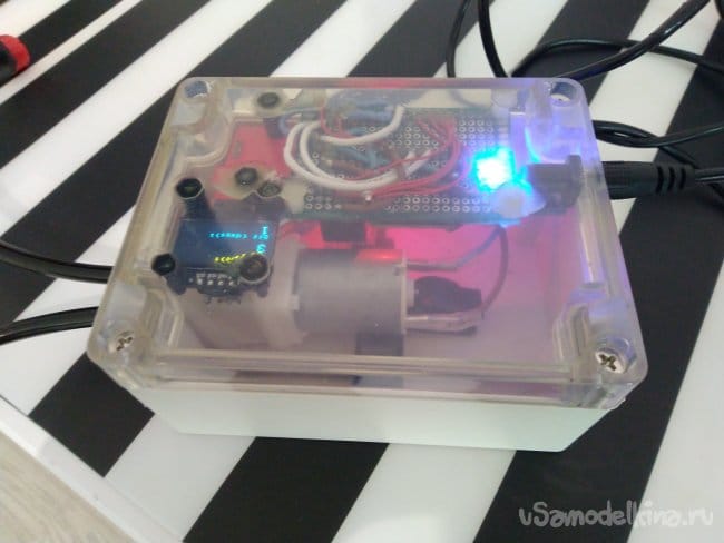 - По причине экономии места и упрощения устройства, я отказался от использования RTC-модуля реального времени и ограничился использованием функции millis() для регулярного включения помпы по таймеру;