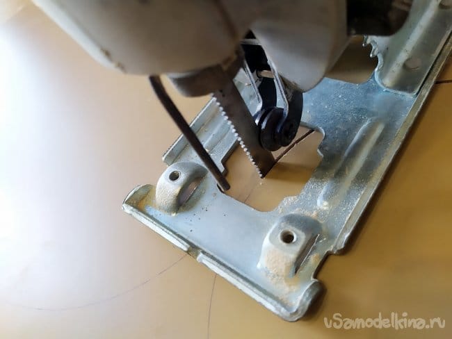 После того, как наметили наши круги, берем лобзик и начинаем вырезать. Я использую специальную фигурную пилку для дерева, с маленькими зубьями. Когда я только начинала учиться держать лобзик в руках, для меня было загадкой, как сделать красивый фигурный срез. Оказалась, все дело в пилке. Правильная пилочка будет спокойно идти по кругу, не будет рвать материал и оставлять некрасивые края.