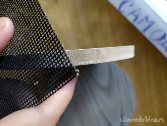 После того, как мы все вырезали в нужном колличестве, края подставочек необходимо зашкурить. Они и так получаются практически ровные, но шкурка никогда лишней не будет. Я использую железную сеточку, номер 120. Отрезаем от нее кусочек, и слегка проводим по краям. Если все устраивает, то протрем все это дело влажной тряпочкой и можно переходить к следующему этапу.