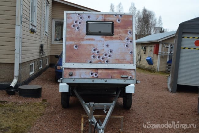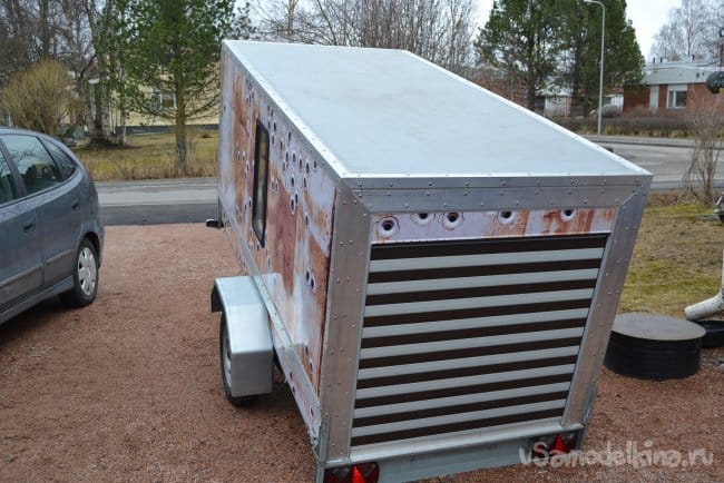 Для того чтобы сделать корпус прицепа, нам понадобится стандартный бортовой прицеп и затем на нём мы будем строит корпус. Материалы строительства, брусок 50 на 50, брусок 30 на 50, две роллетные двери, оцинковка, алюминиевый профиль, фанера и по мелочям. Процесс этот несложный и не требует много времени, мне для строительства понадобилось неделя.