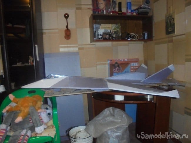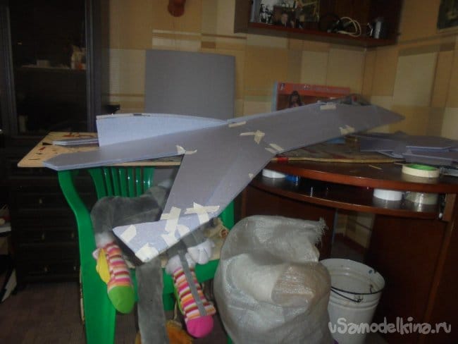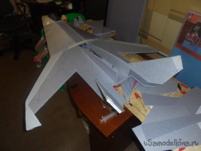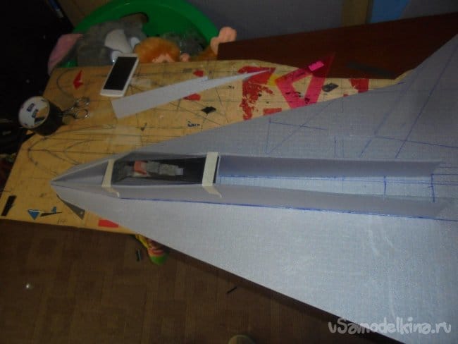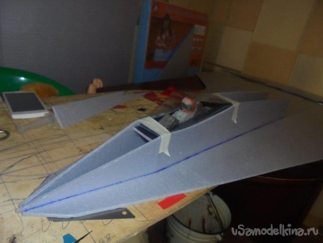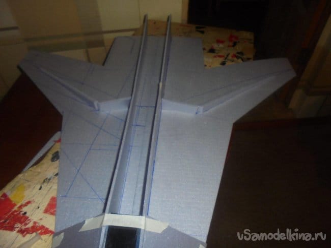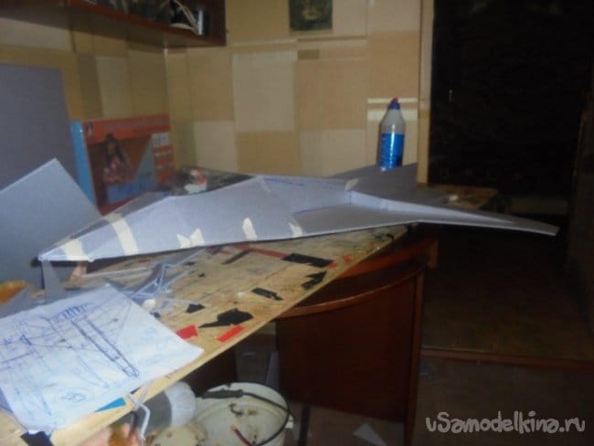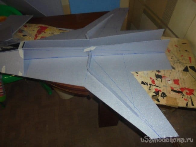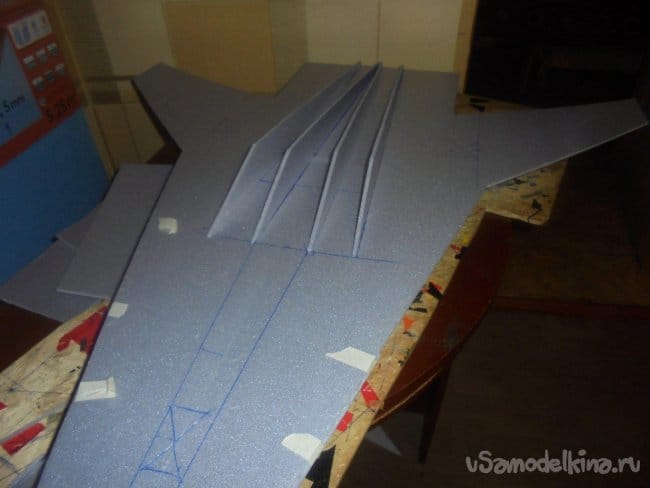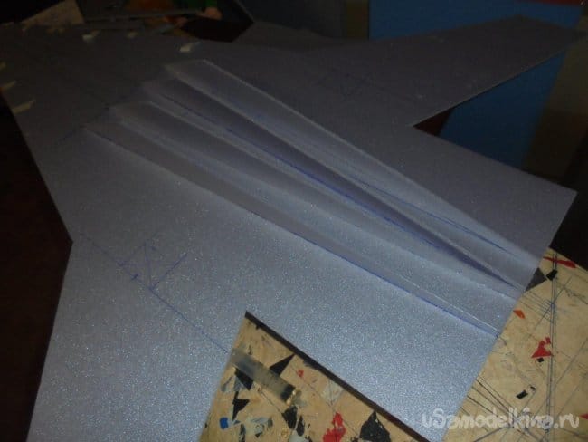 Подложку пришлось подклеивать встык для того, что бы получить основную, несущую плоскость крыла, на которую я монтировал все остальные детали модели.
