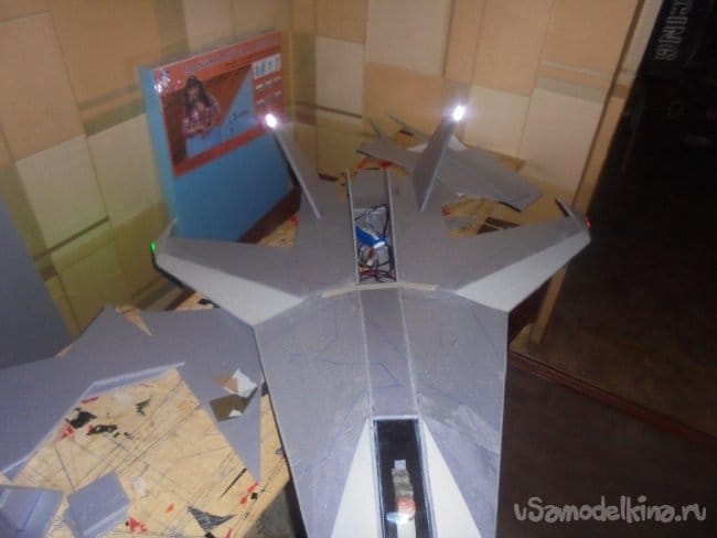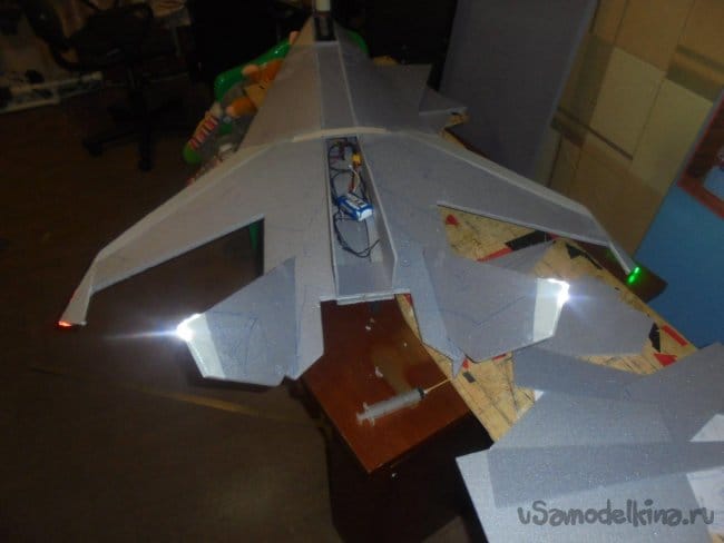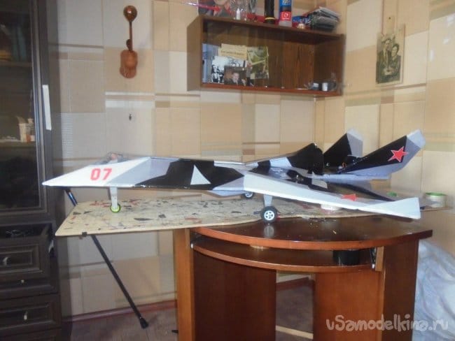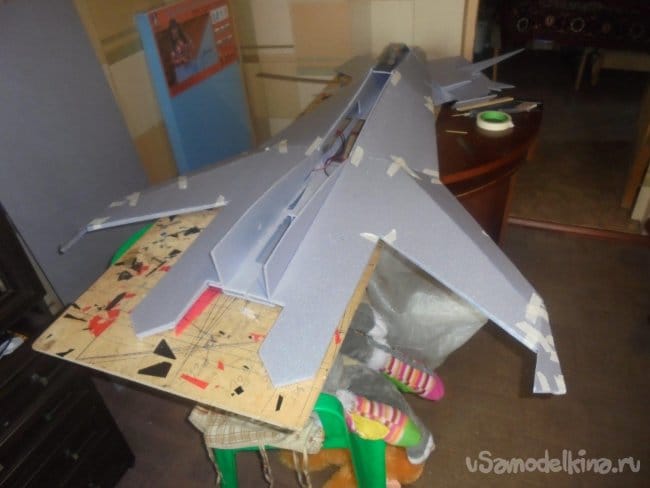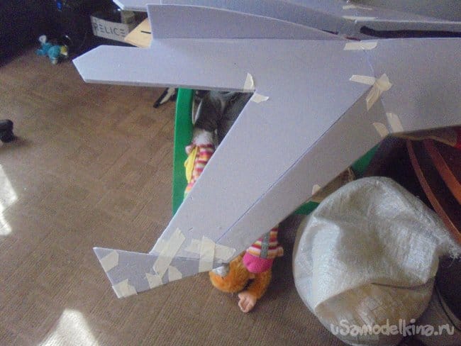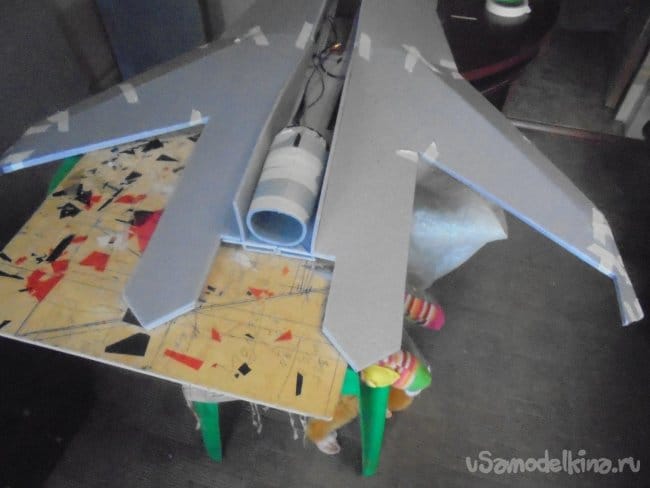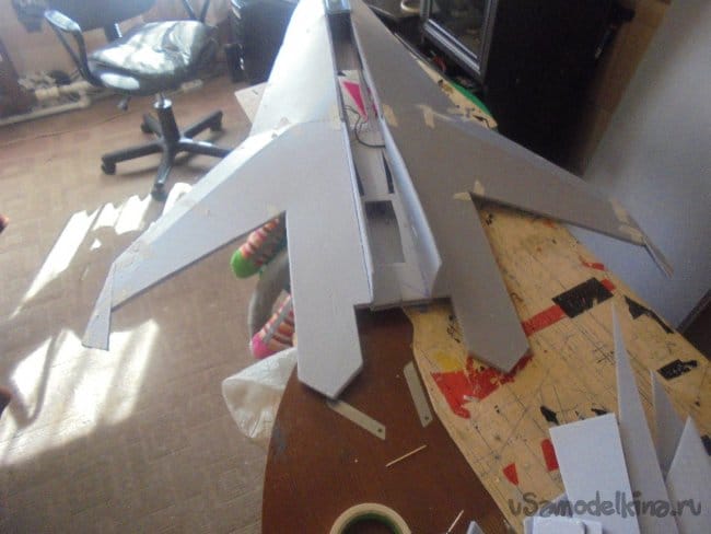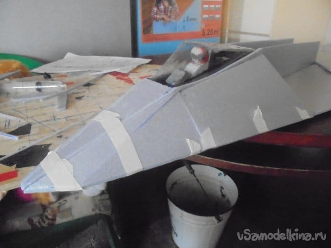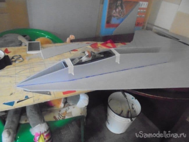 С нижней стороны несущей платформы приклеил боковые стенки воздухозаборников – воздуховодов.