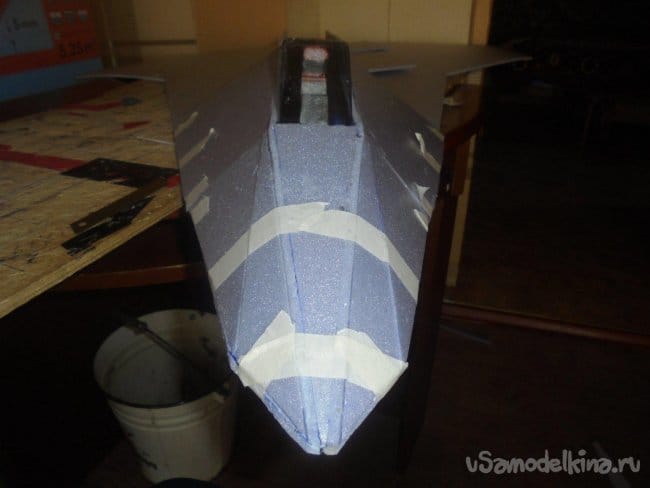 Для жёсткости и создания небольшого профиля крыла вклеил внутренние перегородки, на которые приклеивал наружную обшивку крыла.