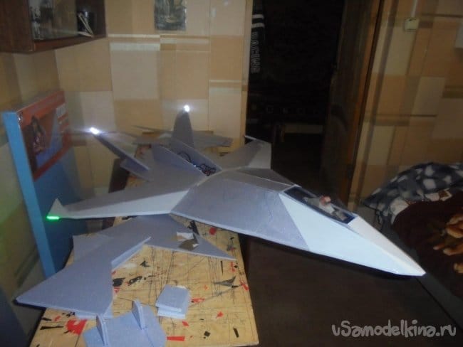 Пилота вырезал из кусочка утеплителя «Пеноплекс» и раскрасил его Гуашевыми красками.