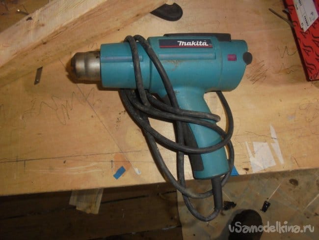 Затем вставил готовую заготовку в пластиковую бутылку и путём нагрева техническим феном, получил готовый фонарь для кабины.
