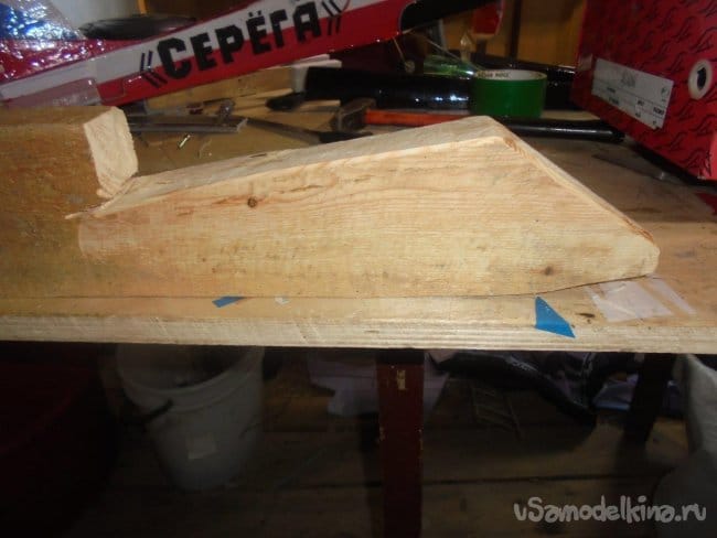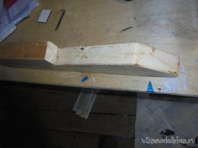 Для этого, вначале, я вырезал из деревянного бруска заготовку, немного обработал её наждачной бумагой и диком «болгарки.