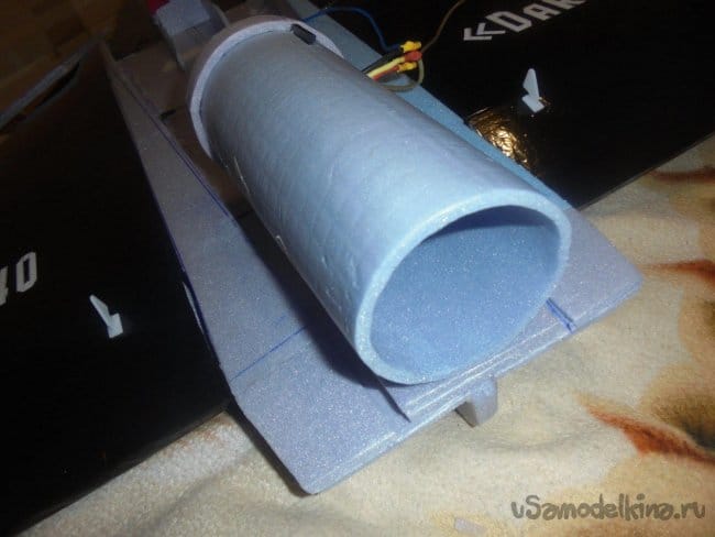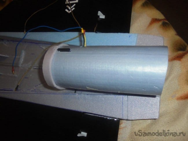 На импеллер сделал тубус, длина которого равна 1,5 длины корпуса импеллера и имеет сужение на выходном сопле порядка 5 градусов. Аналогичным образом я делал тубус на импеллер для авиамодели «BlackDart».