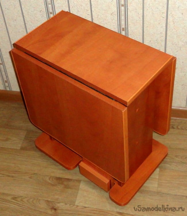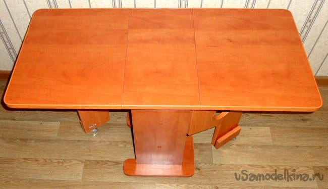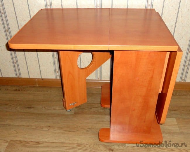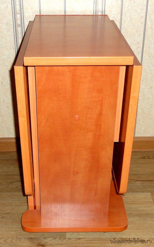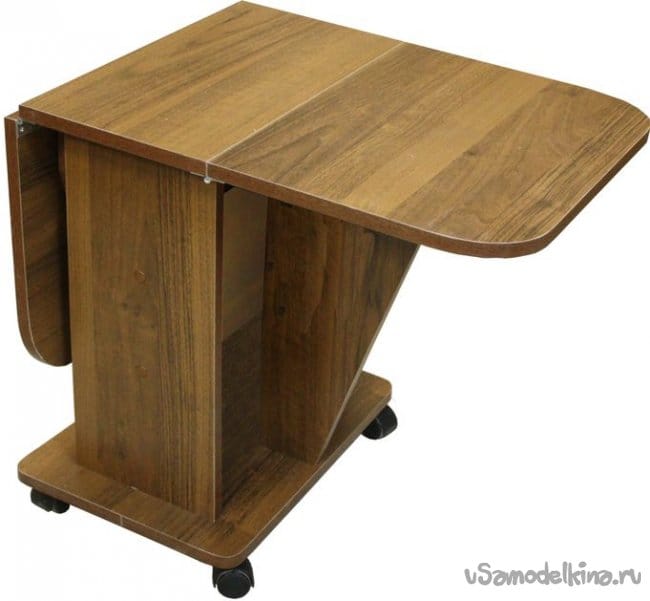Столики подобной конструкции и подходящих размеров, имеющиеся в продаже в рядом расположенных магазинах не имеют хорошей устойчивости в полностью или частично разложенном виде (на фото один из таких вариантов). Т.е. реальные «кувыркашки» даже при не большой нагрузке на край (проверено на практике).