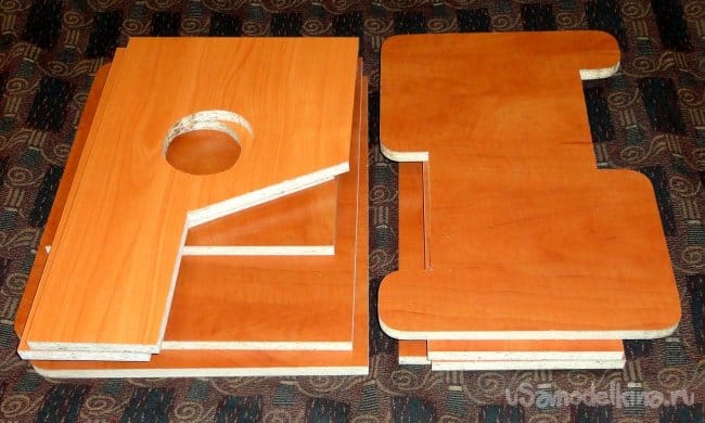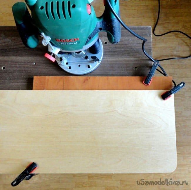 Наружные углы деталей закруглял фрезером, используя фрезу с верхним подшипником, по шаблону из куска фанеры (для достижения максимально одинаковой формы).