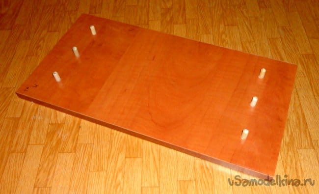 Центральная часть столешницы крепится к боковым стойкам на деревянные шканты с использованием клея типа «жидкие гвозди» (для надежности использовано 6шт).