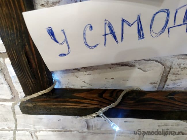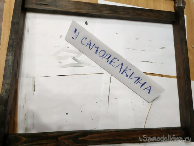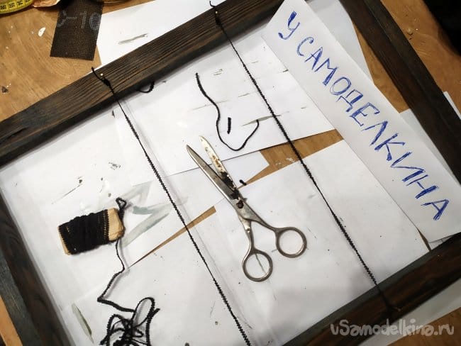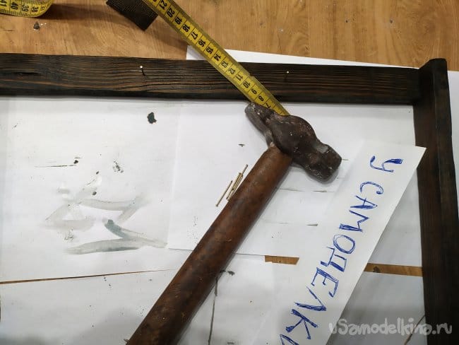 Чтобы можно было повесить на стену, сзади, на верхней части, я тоже вбиваю два гвоздя, и завязываю на них веревку, кончики обрезаю. Это очень простой способ, чтобы не покупать специальных креплений.