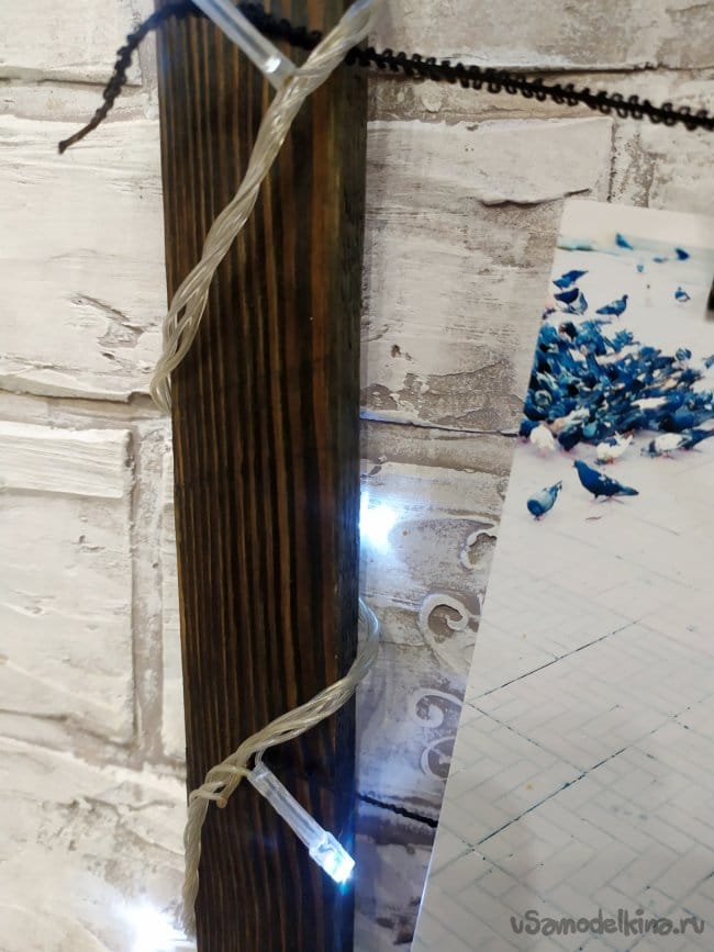 Как правило, в нынешнее время, все наши фотографии хранятся на компьютерах и телефонах. Но все таки, намного приятнее держать в руках настоящие бумажные фото, которые не исчезнут, если сломается телефон, или накроется диск. В этом МК, я предлагаю вам сделать интересную полочку, на которую можно повесить любимые снимки, поставить несколько маленьких предметов, и даже использовать как импровизированный ночник.