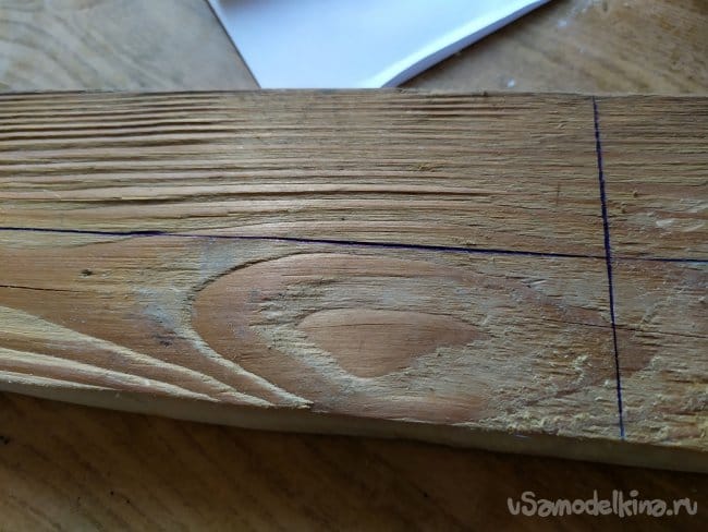 Я прикинула примерно, какой длины будут пары стенок. Для верха и низа я отметила 380мм. от всей доски. Для боковушек остается 440мм. Так же, ширина доски у меня составляет 70мм., и просто разделю ее пополом. То есть, итоговая ширина каждой стенки составит 35мм.