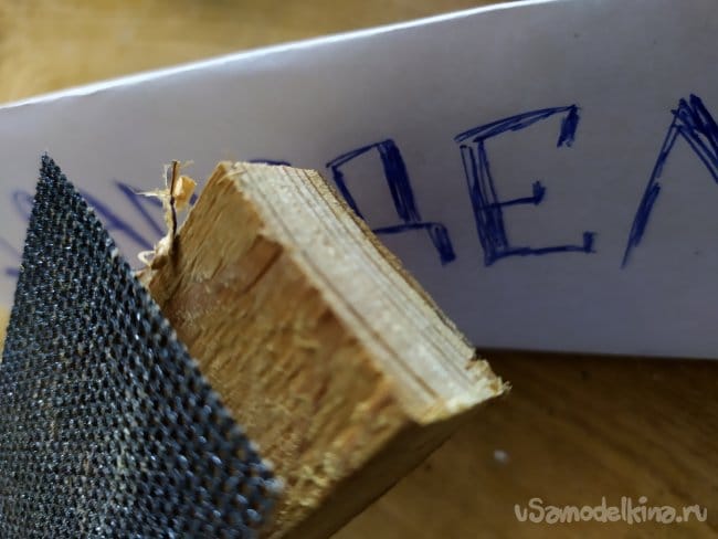 Мы порезали дерево, и теперь его нужно хорошо зашкурить. Лучше делать это шлифовальной машинкой, но если ее нет, то не беда, можно и руками. Главное, делать все очень аккуратно, очень большой шанс загнать занозу.