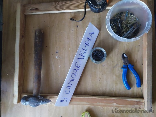 Если у вас есть вторые руки в помощь, то это намного облегчит процесс. Необходимо держать стороны абсолютно ровно, можно приложить металлические уголки, чтоб убедиться, что угол не нарушен. Я использую гвозди по 30мм. Сначала беру верхнюю планку, и отмечаю ручкой, где будут гвозди. По три гвоздя на каждую сторону. Затем, начинаю забивать. Когда гвозди почти преодолел толщину доски, 13мм., подставляют боковую часть, и продолжаю бить. Так же делаю и с остальными сторонами.
