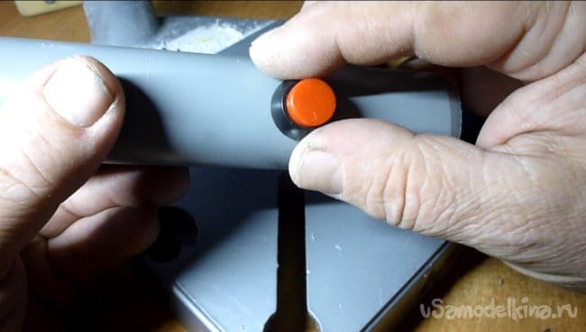 3. Высверливаем и разворачиваем отверстия, в получившемся корпусе дрели, под кнопку и выключатель.