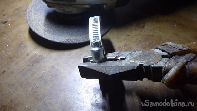 5. Подрезаем хомут крепления электродвигателя.
