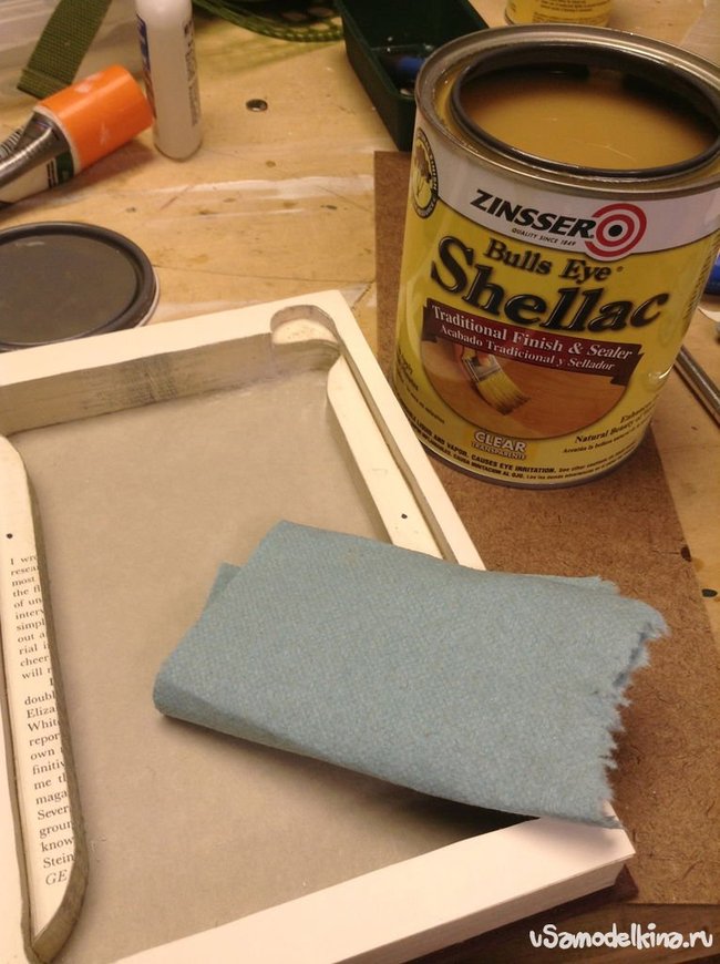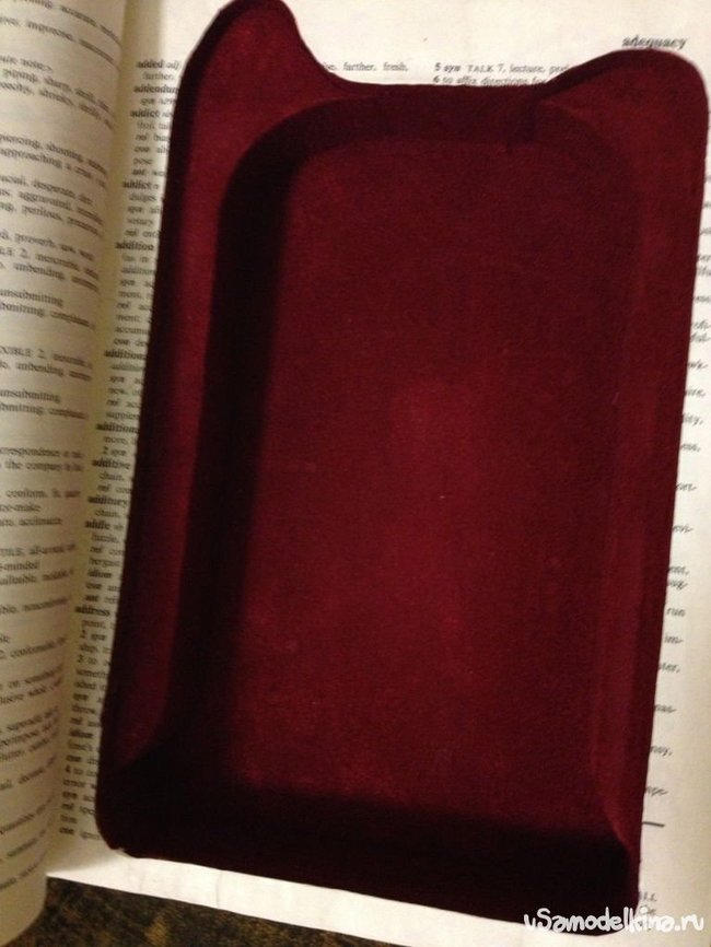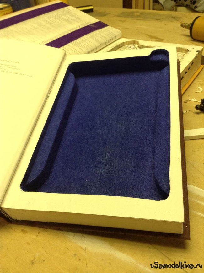 Можно очень просто придать нашей iPad-книжке красивый вид. Все дело в отделке. Для начала нужно обработать весь интерьер шеллаком или шлифующейся грунтовкой. Это необходимо для закрепления флока. Пару слоев будет достаточно.