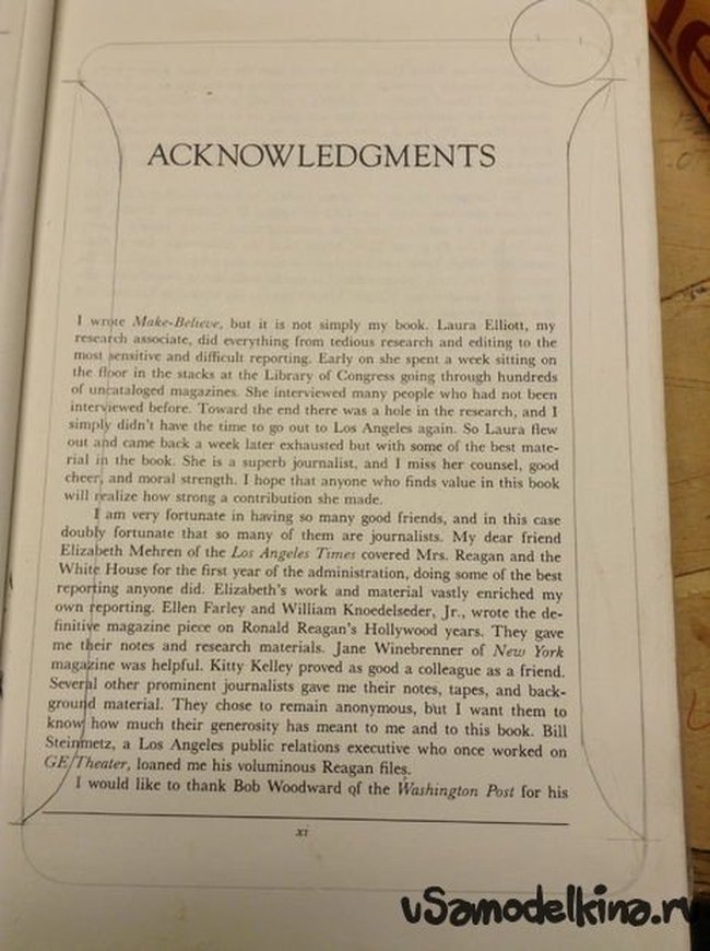 Далее нужно будет расчертить макет дизайна внутренней части обложки и решить, какие странички вырезать. Я оставляю 3-4 странички спереди книги, так что начну примерно после содержания. Вам понадобится минимум 1 свободная страничка, чтобы заклеить все отметки и надписи чертежа. Четко определите расположение кнопок на своем планшете, чтобы предусмотреть выемки и для них. Кнопка on/off вверху справа должна быть легкодоступной, так что я для нее прорезал кружок в полдюйма для нее. Эта выемка также упрощает вытаскивание планшета из обложки или регулировку громкости.