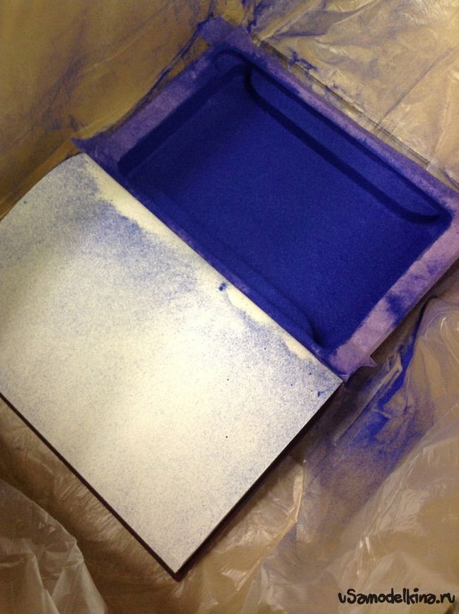 Я проделывал этот шаг дважды. Один раз перед нанесением флока и один раз после нанесения флока. Я думал, что отрезание ненужной части странички повредит мое покрытие, но это оказалось совсем незаметным. Так что достаточно просто проделать этот шаг уже после покрытия флоком, если у вас не получилось сохранить борта кейса чистыми.