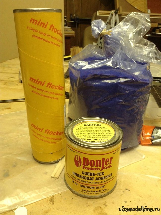 - набор для флокирования (нанесения ворса) - мини-флокер, клейкий подслой, флок