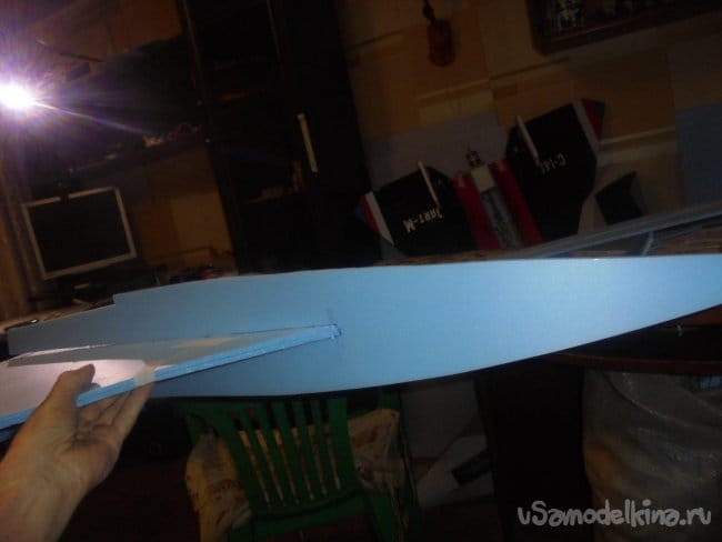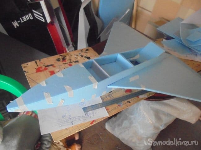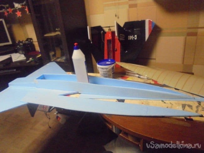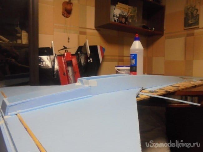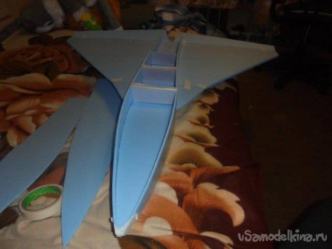 Между боковыми стенками фюзеляжа, для жёсткости, вклеиваются перегородки.