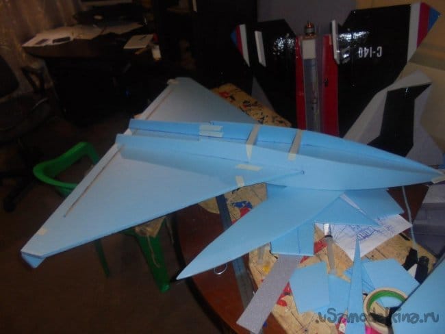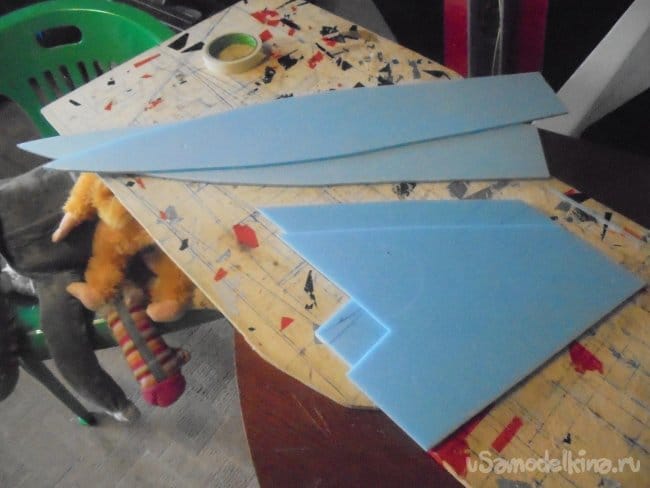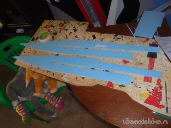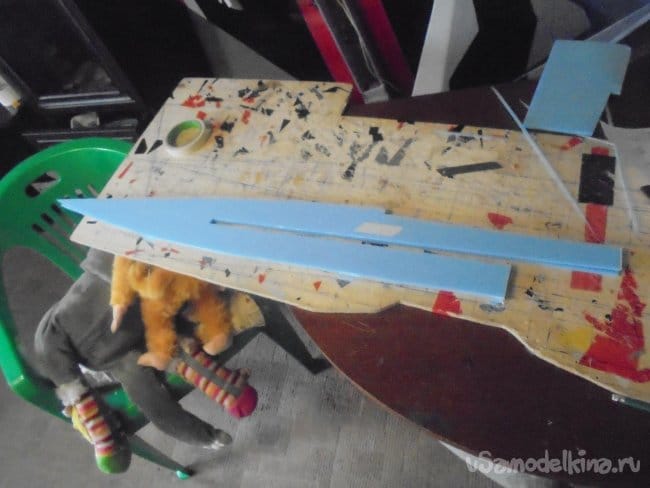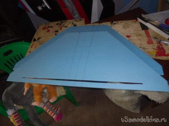Выкраиваются боковые стенки фюзеляжа, киль,верхние и нижние поверхности фюзеляжа, кожух на импеллер.