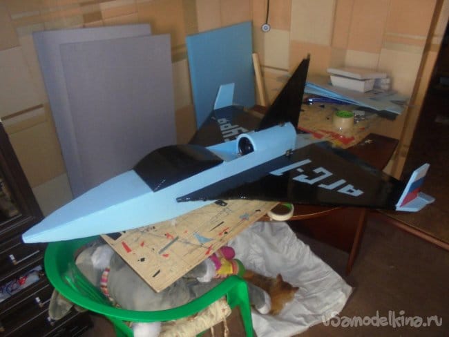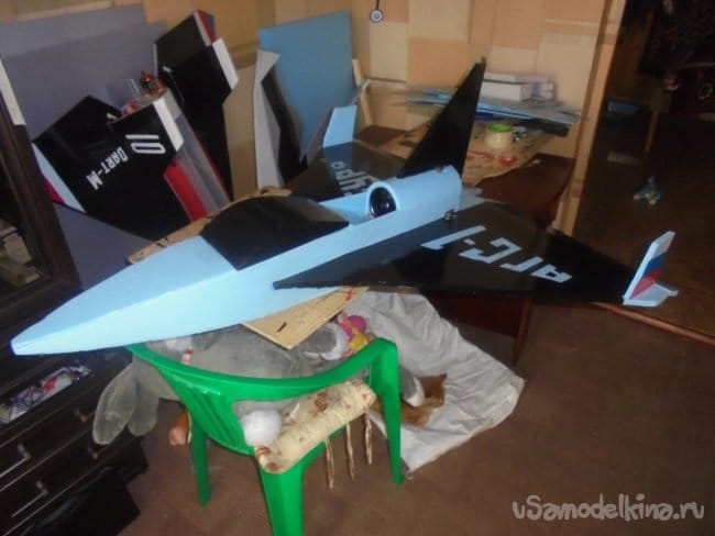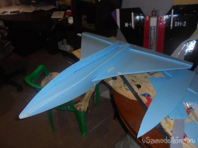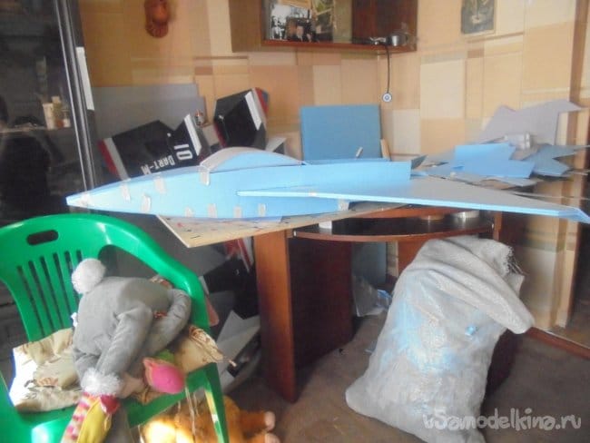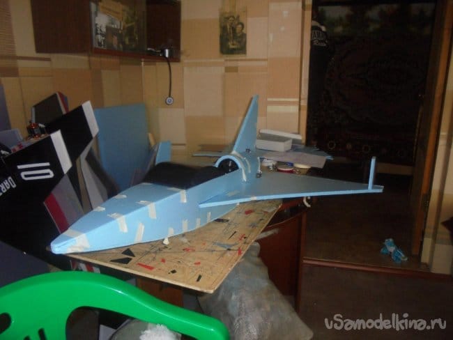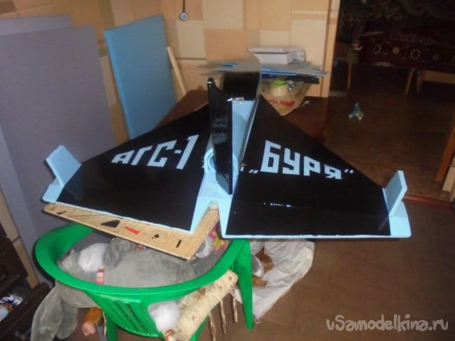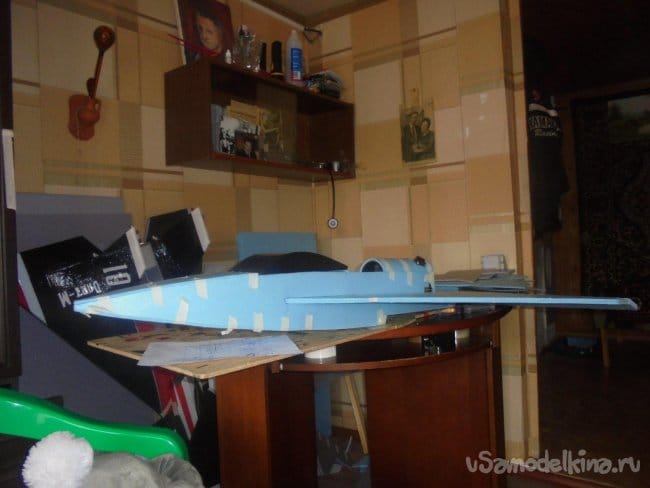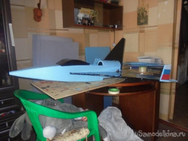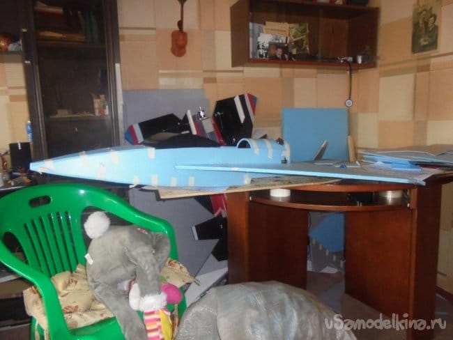 Хотел было проводить лётные испытания, но при рассмотрении модели на местности, мне не понравились её очертания, слишком тяжёлый получился фюзеляж, очень толстый.