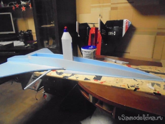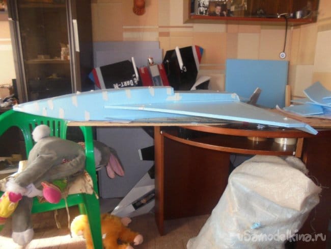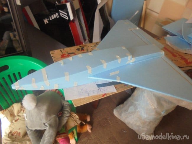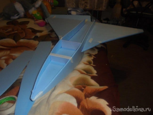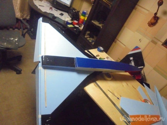 Элевоны навешиваются на двухсторонний скотч.