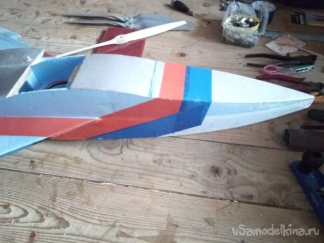 Я решил немного реконструировать модель, поменять удлинение на импеллере – тубус., а заодно улучшить раскраску авиамодель.