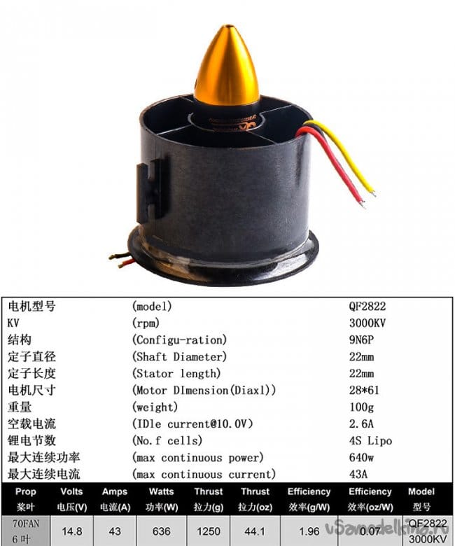 Импеллер – 70 мм с тягой 1500 г.