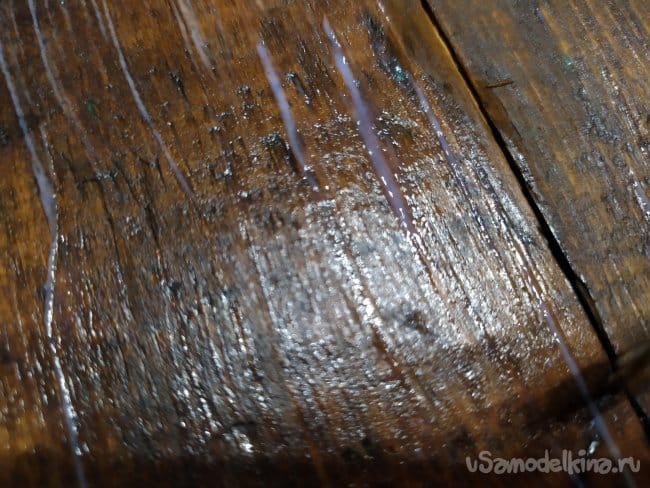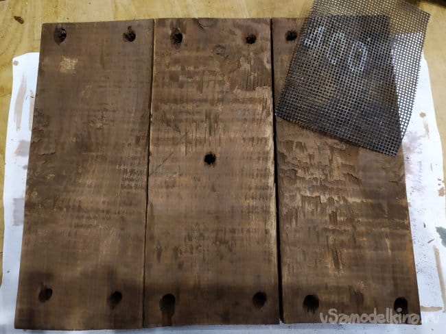 Когда второй слой полностью высохнет, я хочу немного местами осветлить дерево. Для этого, нужно пошкурить еще раз, на выступающих участках поверхность посветлеет.