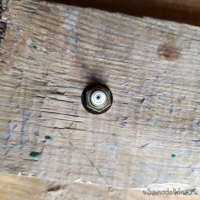 Сначала, нужно сделать отверстие для резьбы. Намечаем ручкой по середине точку.