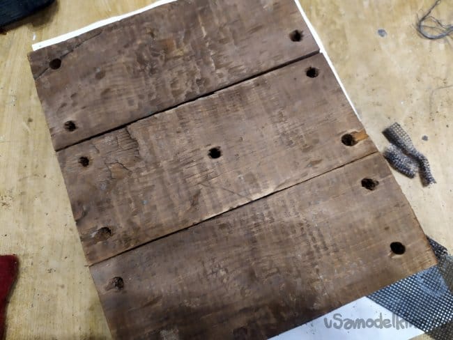 Теперь, все это нужно зашлифовать. Я делаю это руками. Конечно, полностью сошлифовать верхний слой руками не получится. Но хотя бы, чтоб немного посветлело, и убрать торчащие кусочки. В отверстиях это сделать особенно сложно.
