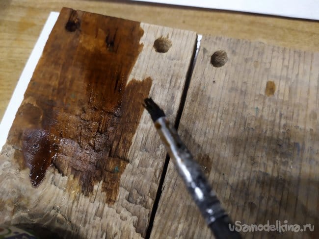 Когда закрасим со всех сторон, дадим морилке просохнуть.