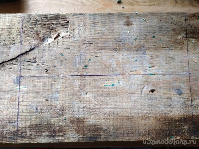 Может не самый подходящий вариант, но что есть, то есть. Мои часы будут состоять из трёх перекладин, поэтому для начала, на широкой доске, я размечаю перекладины. Они будут шириной 75мм., и длиной 200мм.