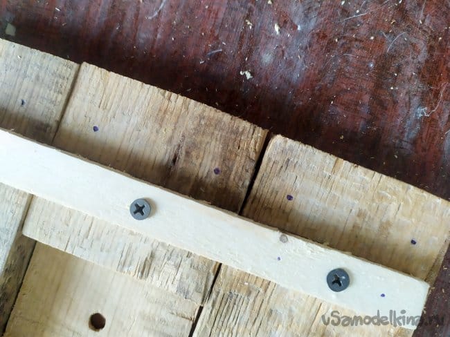 От края нужно отступить несколько см. Отмечаем ручкой, где будут рейки. И на самой рейки, тоже, нужно отметить, где будут скреплять саморезы.