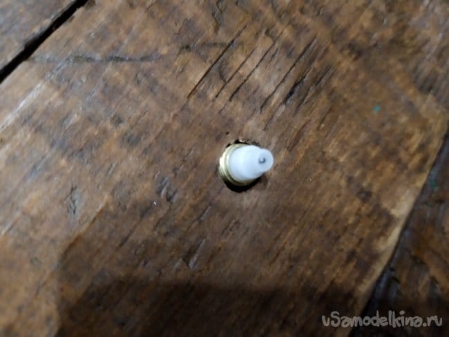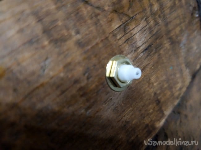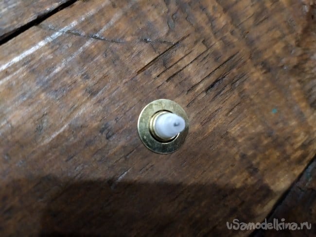 Когда сделали отверстие, вставляем механизм. Если гайка закручивается, то все в порядке.