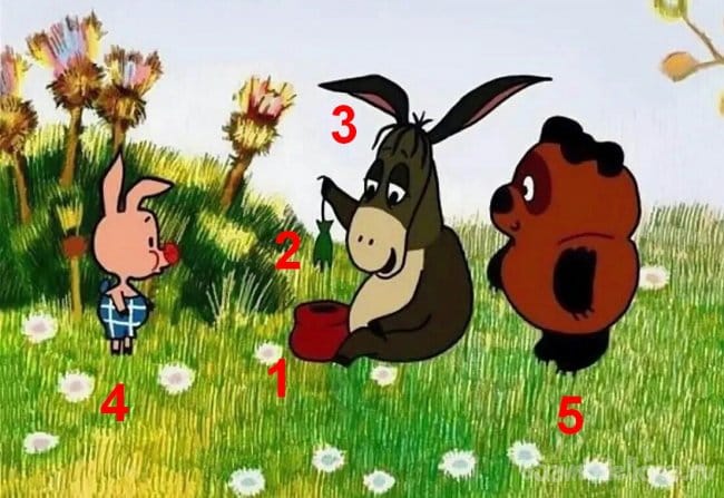 Кадр из мультфильма «Винни-Пух и день забот», по одноимённой сказке А. Милна. Режиссер Федор Савельевич Хитрук. Искательный ум без труда различит описываемый метод, где: 1 – объект измерения; 2 – опускаемый на веревочке измерительный прибор; 3 – оператор; 4,5 – ассистенты (свидетели).