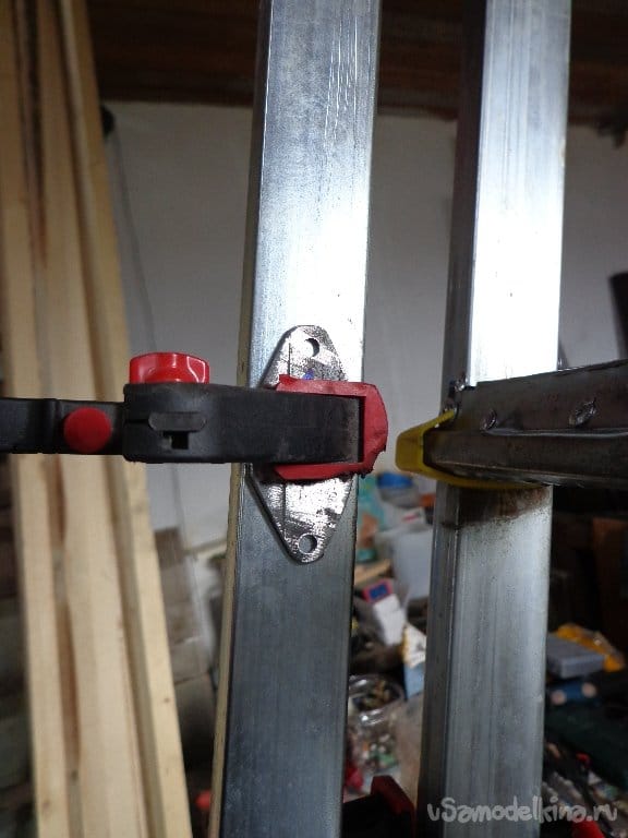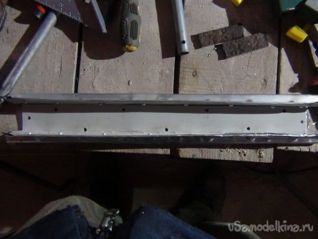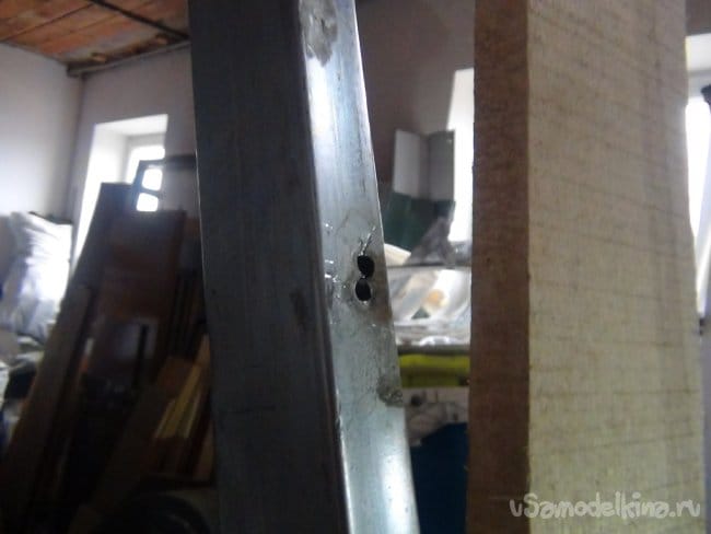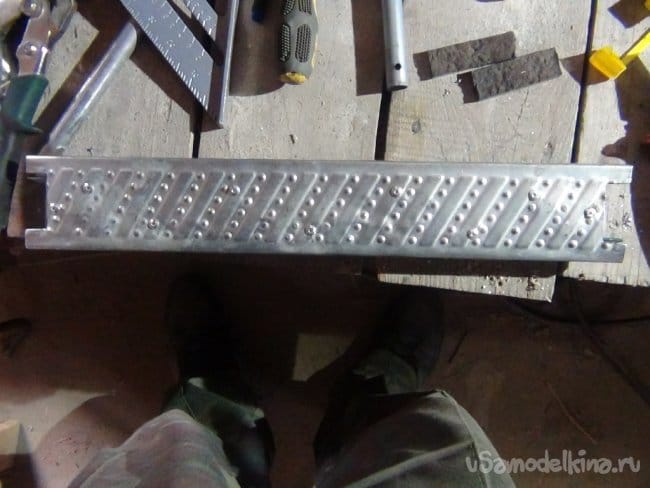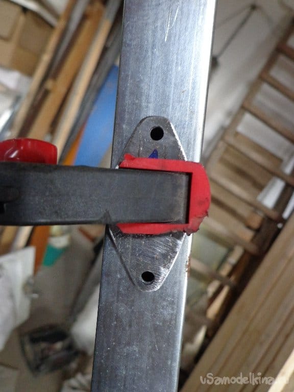 Пока не покрасил их, использовал как шаблон для сверления на стремянке под заклёпки.