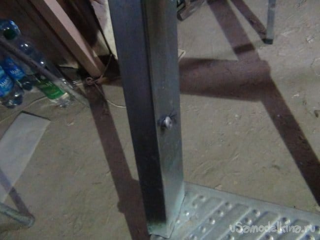 Задние ножки "жили своей жизнью". Трубка, которая их держала, отсутствовала, при этом стремянкой было опасно пользоваться. За время эксплуатации трубка болтаясь на своём месте разбила, не сильно, но достаточно чтобы новая трубка также болталась. Тоже самое было и на верхней трубке. Отломились они только из-за того что, были прихвачены одной каплей сварки, а не обварены по окружности.
