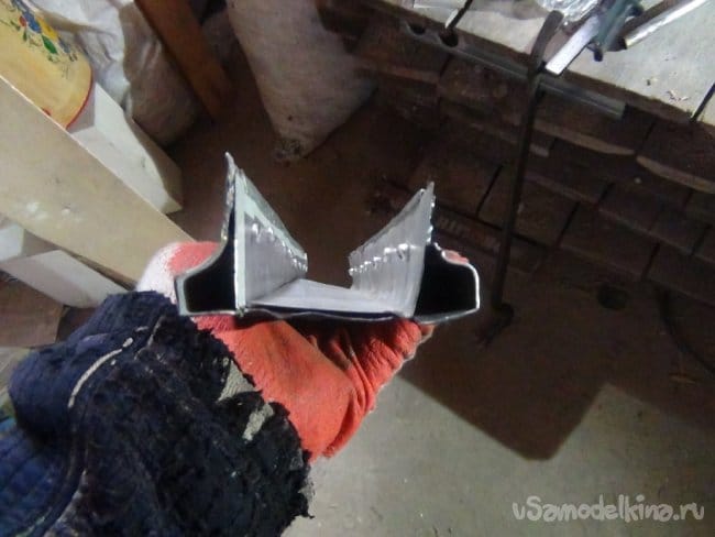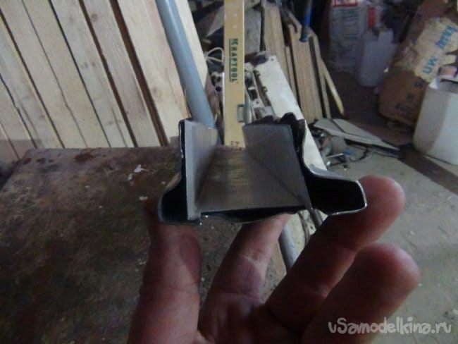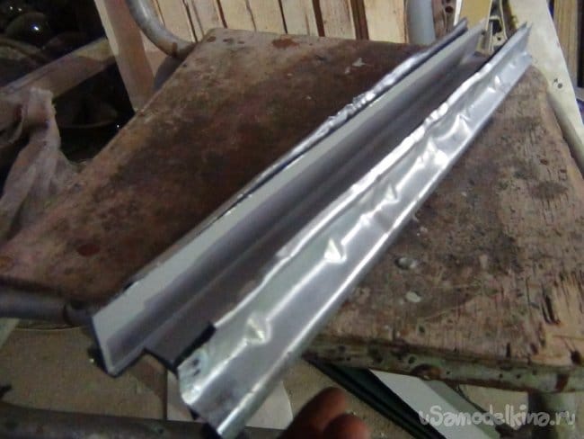 Получился тотже П-образный профиль только уже с нужными размерами. Вырезал лишний металл который может помешать при установке порога на место (на фото выше видно).