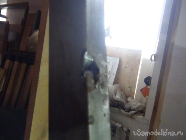 Проблему с просверленными дырками и дыркой продавленной отверткой решил сразу. Сместил порожек на пару сантиметров ниже, тем самым убил двух зайцев, и дырки закрыл, и заклёпки будут устанавливаться на свежее место.