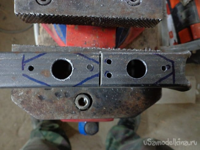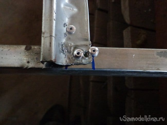 Поскольку штатные отверстия для данных трубок были разбиты, то решил их усилить пластинками толщиной 2 мм. Они будут сколько не держать, они не будут позволять трубкам при подвижках разбивать отверстия. Можно конечно было приварить, но не охота было разматывать рукава сварки.