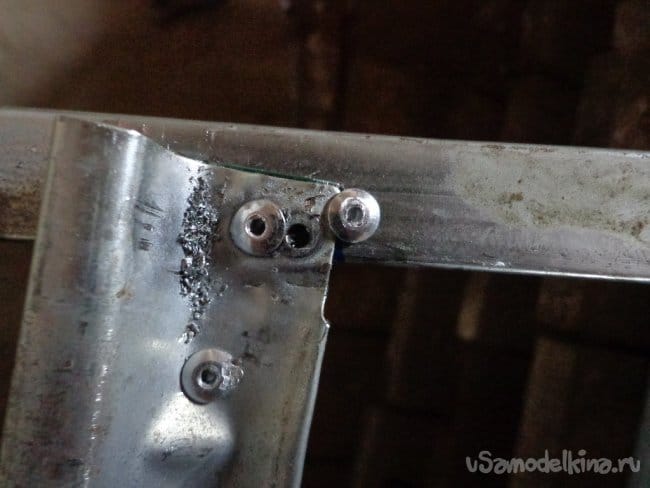 Заклёпки устанавливал с небольшим смещением. Получалось две точки опоры вместо одной, находящейся на одной прямой.