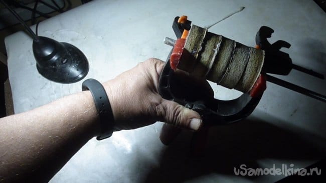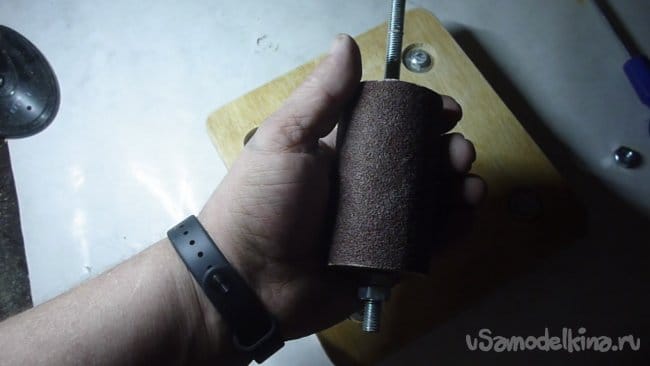 10. С помощью клея фиксируем на барабане шлифовальную шкурку.