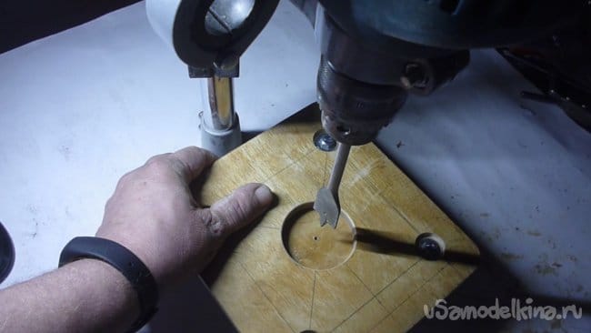 4. Рассверливаем в площадке под подшипник отверстие (показано в видео инструкции).